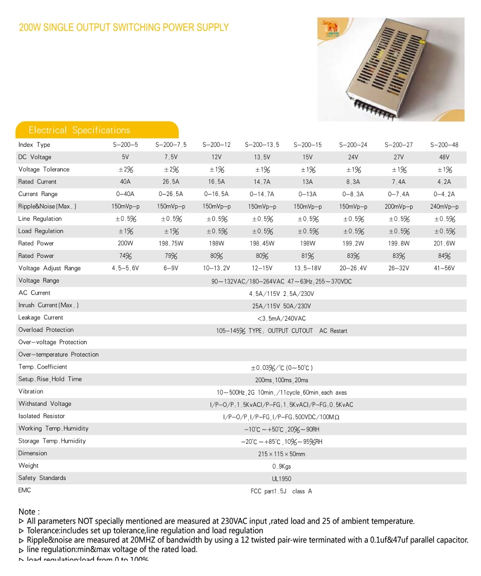 Источники питания на 200 Ватт (S-200)