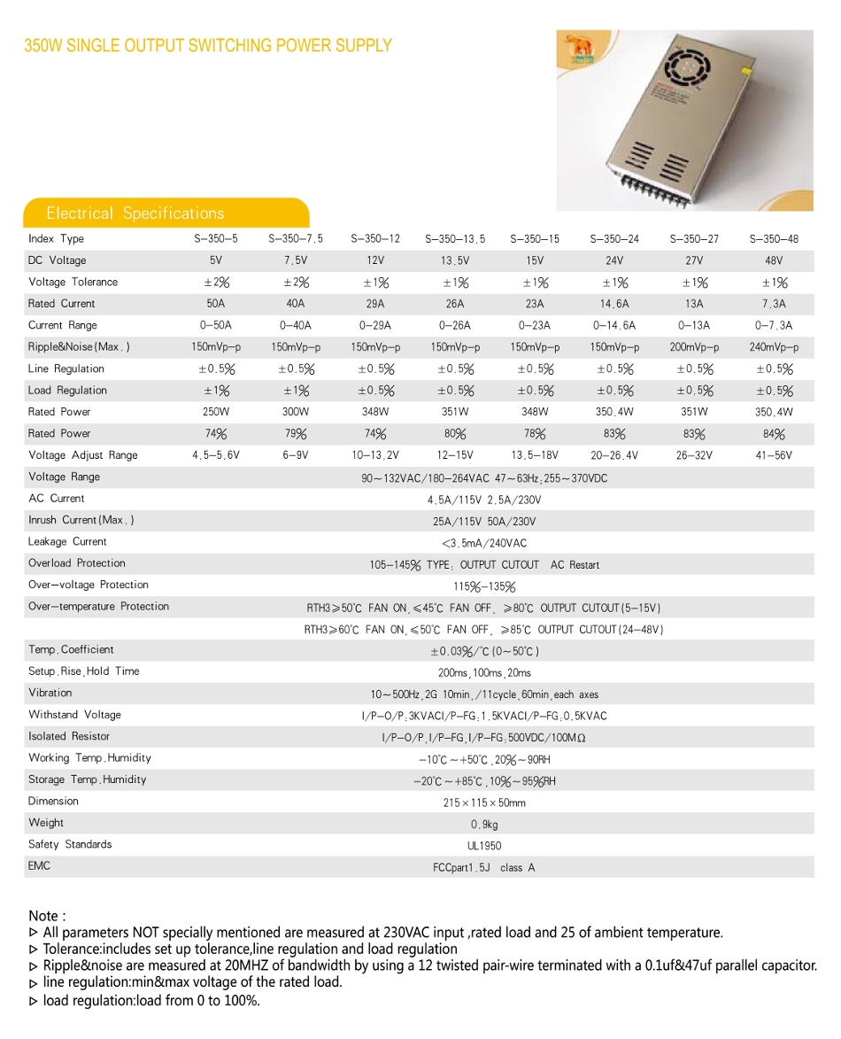 | Импульсный блок питания S-350-48 | 48 В | 7.3 А | 350 Вт | Wantai Motors | 2 800 ₽ | Временно нет в наличии | |