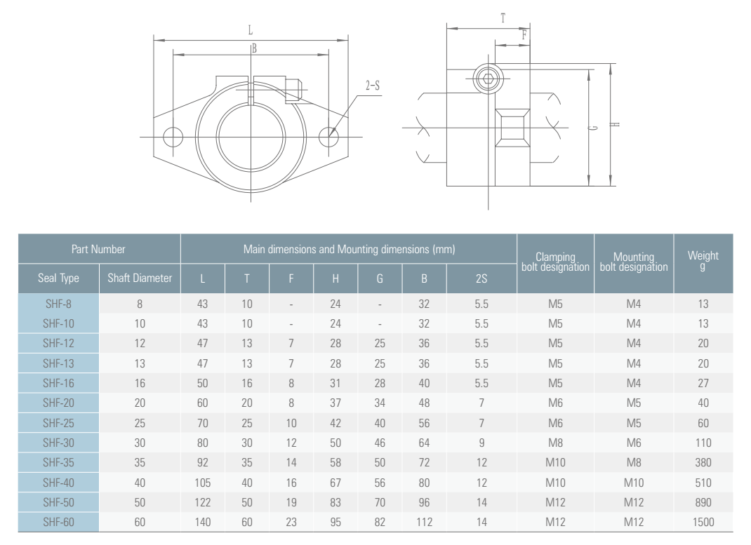 Опоры вала различаются по типу крепления - опоры с горизонтальным крепление (серия SK) и опоры с вертикальным креплением (серия SHF) и по типу материала.